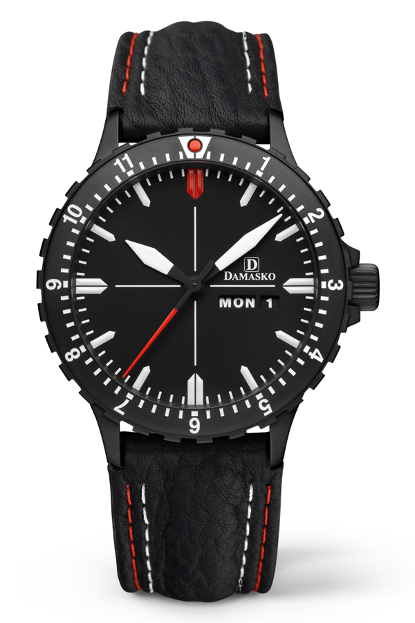 An innovative material and functional equipment prove the new DK4X models with DAMASKO manufacture caliber. The built-in movement A26-3 with silicon escape wheel has a power reserve of 42 hours and displays the full hour, minute and, as well as the center second and date and weekday indication at 3 o'clock. The completely through hardened case, case back and crown are made of ice-hardened stainless steel. The clear optics of the dial and the special hand shape allow optimal readability even under poor external conditions.